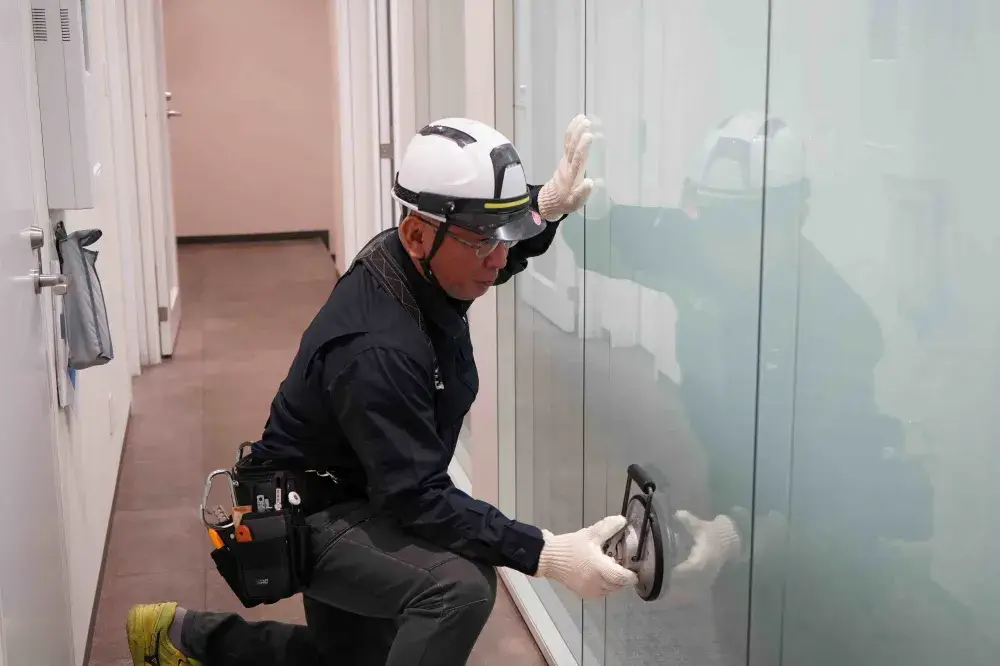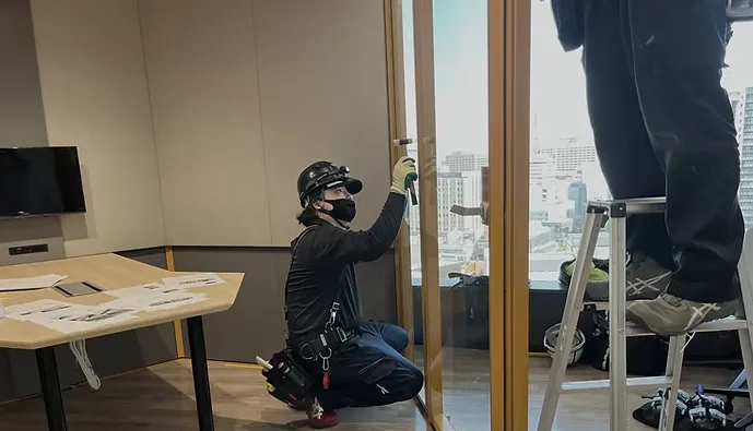板ガラスの切断・加工・販売・配送・施工までを自社一貫体制で対応。素材調達から施工・クリーニングまでを自社で管理することで、高品質かつスピーディーなサービスを実現しています。ウインドウフィルムや飛散防止フィルムの施工にも対応し、安全で安心なオフィス空間を提供。